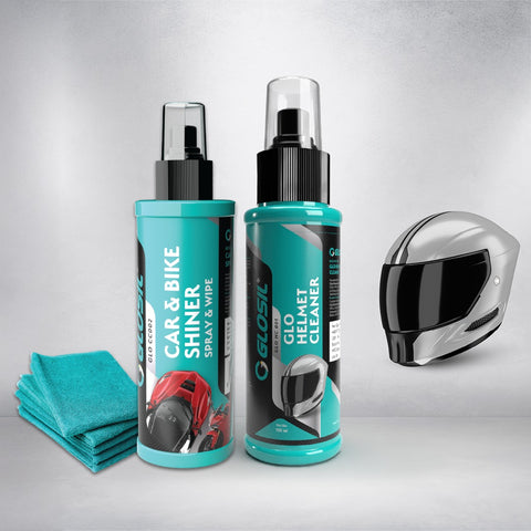 The Glosil Combo Pack is specially curated to keep your helmet crystal clear, your bike shining bright, and every surface scratch-free with a premium microfiber cloth.